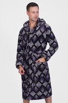 Мужской халат из двустороннего махрового хлопкового полотна. Модель на запах, с поясом в шлёвках, с боковыми карманами, с воротником "шаль", с петлей-вешалкой по горловине спинки.