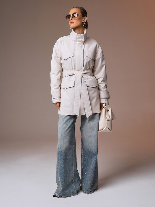 Детали: застежкака на молнию и потайные кнопки, декоративные паты, в комплекте пояс из основной ткани