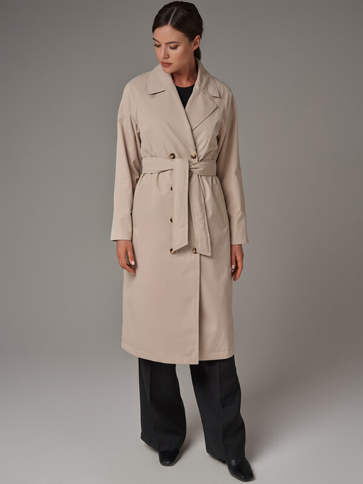 Плащ утягивается на спине по линии талии на широкую резику. В комплекте есть пояс из основной ткани.