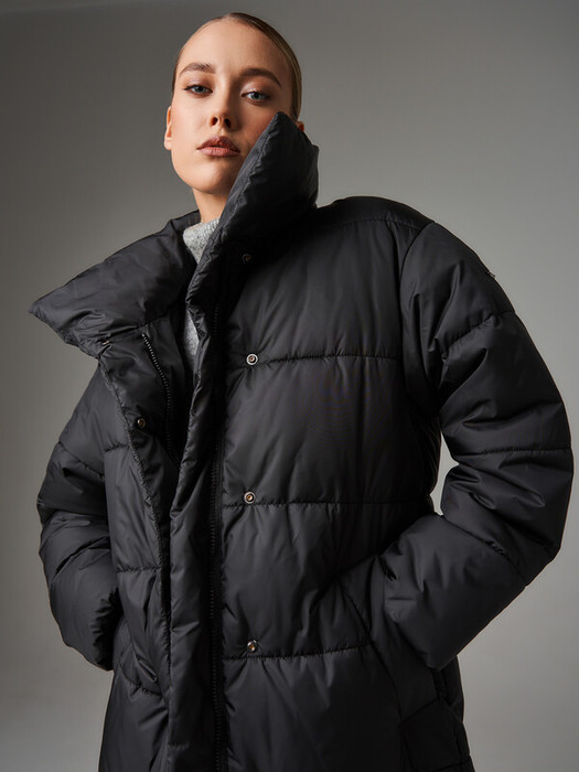 Пуховик прямого силуэта на молнии и потайных кнопках.