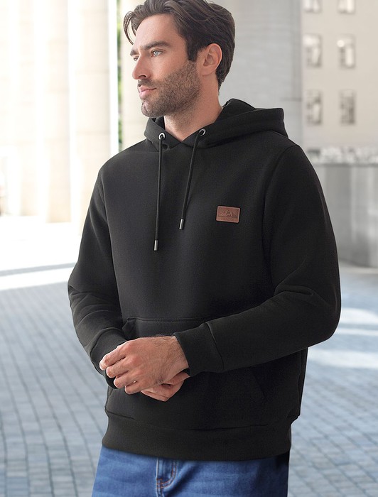 Состав: 80%Хлопок 20%ПЭ Плотность: 320 Г/м2Худи выполнено из премиального эластичного футера трехнитки с теплым начесом. Уютная и классическая модель с капюшоном и карманом-кенгуру дополнена нашивкой с логотипом бренда из эко-кожи. Свободный крой не сковывает движений. Высококачественная фурнитура цвета темное серебро. Изделие сочетается в костюме с брюками U44.006