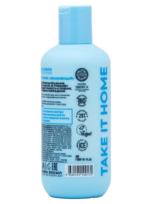 Состав: Aqua, Cetearyl Alcohol, Cocos Nucifera Oil, Cetrimonium Chloride, Behentrimonium Chloride, Schisandra Chinensis Extractwh (органический экстракт лимонника нанайского), Sodium Hyaluronate (гиалуронат натрия), Camellia Oleifera Seed Oil* (органическое масло камелии), Vaccinium Vulcanorum Fruit Extractwh (органический экстракт голубики вулканической), Iris Sibirica Root Extract* (органический экстракт ириса сибирского), Laminaria Angustata Extractwh (органический экстракт ламинарии северной), Nuphar Luteum Root Extract* (органический экстракт водной лилии), Distearoylethyl Hydroxyethylmonium Methosulfate, Phenyl Trimethicone, Dimethicone, Dimethiconol, Lauryl Glucoside, Hydroxyethylcellulose, Guar Hydroxypropyltrimonium Chloride, Benzyl Alcohol, Benzoic Acid, Sorbic Acid, Parfum, Citric Acid, Citronellols, Hexyl Cinnamal, Linalool.