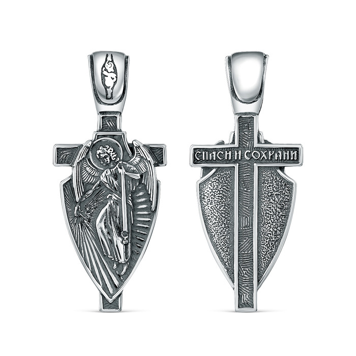 Совместные покупки Омск Ювелирные украшения и бижутерия Подвески — Икона-Крест из чернёного серебра - Ангел Хранитель, 3,5 см 925 пробы К3-362ч