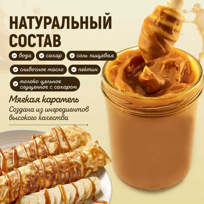 Соленая карамель отличается необычным сочетанием вкусовых качеств: приятной сладости и ненавязчивых соленых аккордов. Карамель можно использовать как самостоятельный десерт, топпинг для мороженого, добавку к кофе, сироп для коктейлей или карамель для торта. Пикантный вкус сладости к чаю не оставит никого равнодушным. Слегка соленоватый продукт идеально сочетается с пломбиром, ванильным кремом и кофе. Состав:сливки; сахар; глюкозный сироп; сливочное масло; соль морская