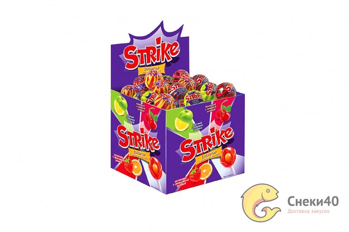 Совместные покупки Омск Продукты Конфеты, сладости — Карамель на палочке Strike с жевательной конфетой 11г (50шт)