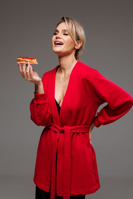 Жакет Gowear из футера в стиле smart casual поможет создать в меру строгий и одновременно расслабленный образ. Жакет составит беспроигрышную комбинацию с платьями, юбками и брюками. Жакет прямого силуэт, с v-образным вырезом горловины, без застежки, с отдельным поясом. На левом переде вышивка-логотип в цвет ткани. Рукав свободный, со складками, присобран на манжету. Жакет без подкладки.