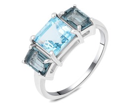 — Кольцо, 1 сапфир корунд кушон 7х9 мм/2.87 ct. , 2 сапфир корунд триллион 4 мм/0.