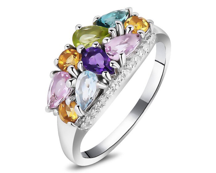 Кольцо, арт.658359 Серебро Серебро 925, р. 17, 3,04 гр., аквамарин выращ. , аметист , морганит , перидот
