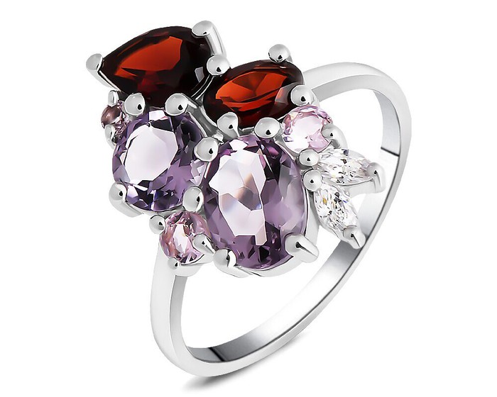 Кольцо, арт.657802 Серебро Серебро 925, р. 19, 3,63 гр., аметист , гранат , морганит