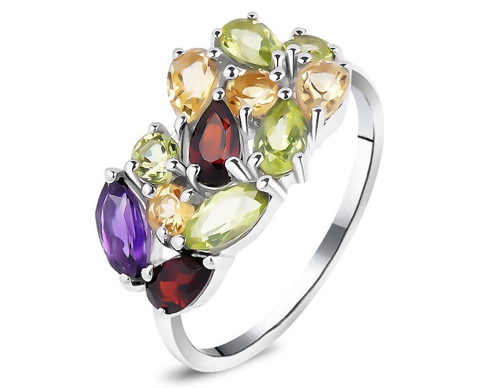 Кольцо, арт.658408 Серебро Серебро 925, р. 17, 2,82 гр., аметист , гранат , перидот , цитрин
