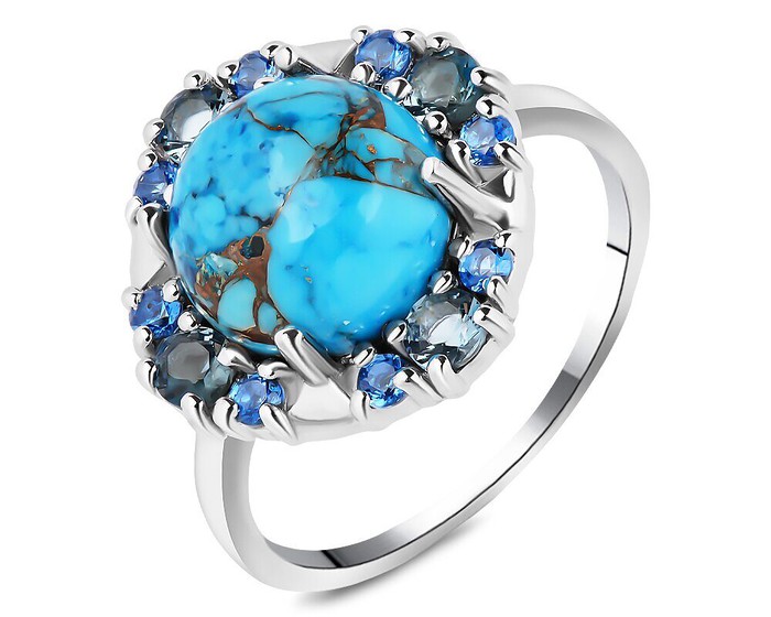 Кольцо, арт.658502 Серебро Серебро 925, р. 18, 3,56 гр., бирюза пресс. , лондон топаз кварц , нанотопаз