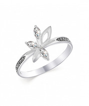 Кольцо с фианитом выборочное чернение серебро 925*