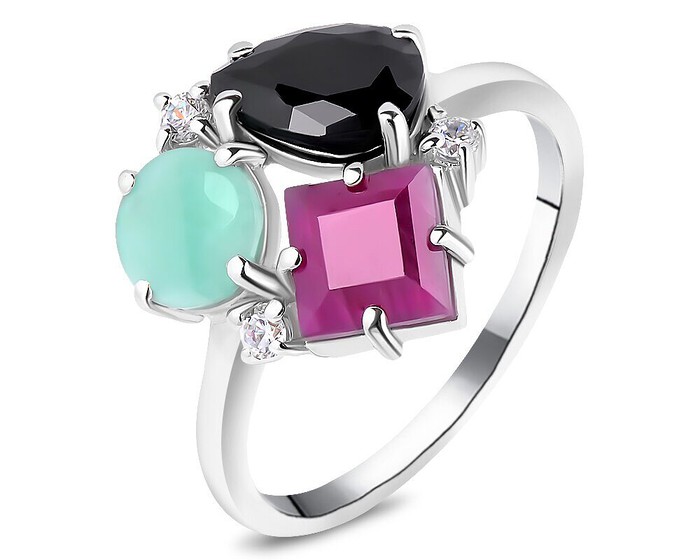 Кольцо, арт.658779 Серебро Серебро 925, р. 17, 3,04 гр., изумруд берилл , рубин корунд , сапфир корунд