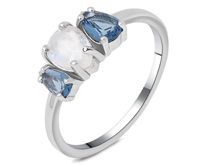 Кольцо, лунный камень , танзанит выращ., Марисса