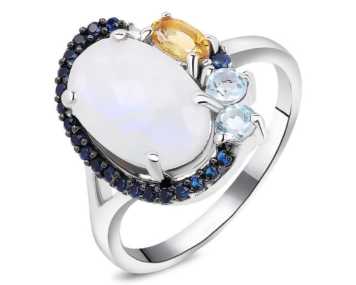 Кольцо, лунный камень , топаз , цитрин , наносапфир, Абелия