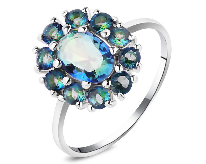 Кольцо, мистик кварц синий, Солнышко