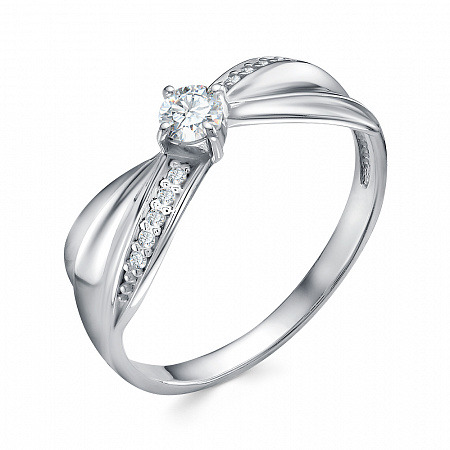 Кольцо с фианитом родированное серебро 925*