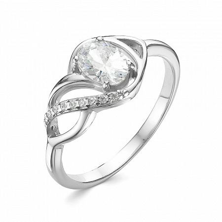 Кольцо с фианитом родированное серебро 925*