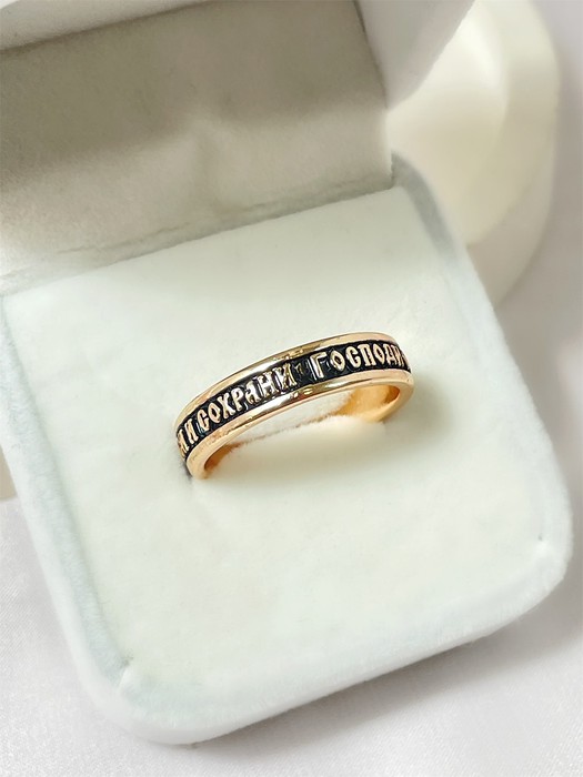 Красивое кольцо из дубайского золота с надписью "спаси и сохрани"