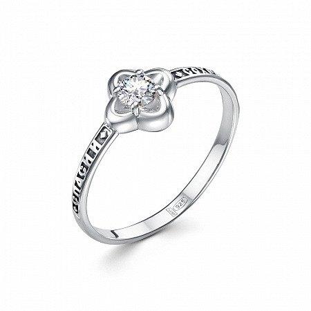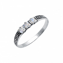 Кольцо (Спаси и Сохрани) из серебра ч/ч литьё с фианитом