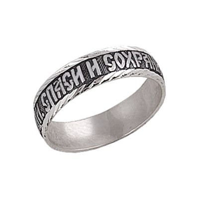 Кольцо (Спаси и Сохрани) из серебра штампованое с алмазной огранкой