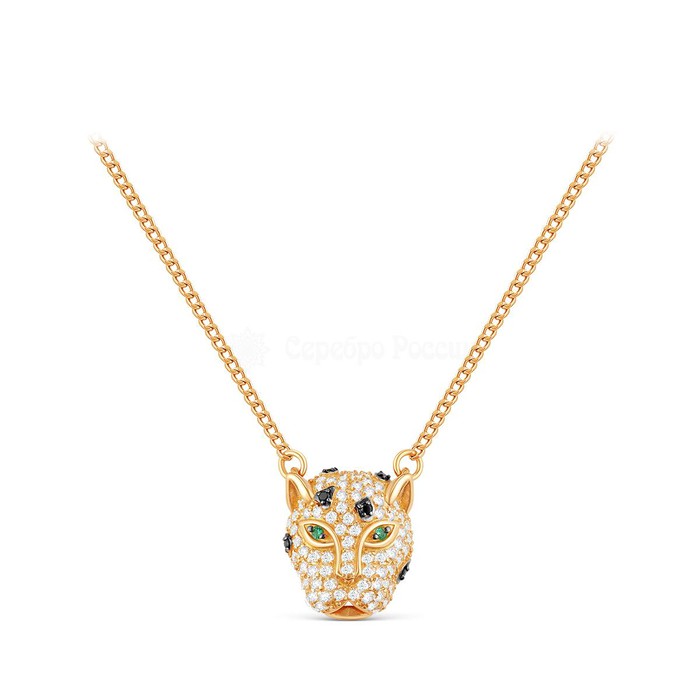 Колье из золочёного серебра с нат.изумрудом, нат.шпинелью и фианитами