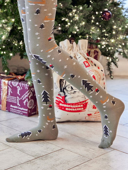 рис.3005 Гладкие колготки с рисунком в виде новогоднего паттерна.