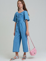 Яркий комбинезон из легкой вискозной ткани с цветочным набивным принтом, декорированный оборками на груди. Приталенный крой, тонкие регулируемые бретели, застежка-молния на спинке. Длинные широкие брючины.На ребенке представлен размер 140:- Ширина изделия по линии груди 35,5 см- Ширина изделия по линии талии 35 см- Ширина изделия по линии бедер 41,5 см- Длина внутреннего шва 56 смРазница между размерами составляет 1,5 см.
