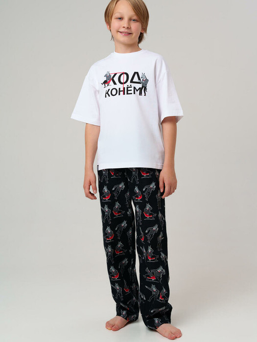 Стильная подростковая пижама для мальчика от PlayToday — удобный комплект для сна и отдыха, состоящий из хлопковой футболки и мягких текстильных брюк на резинке со шнурком. Современный дизайн с модным принтом делает пижаму не только практичной, но и стильной частью подросткового гардероба.