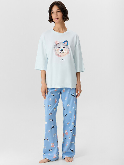 Совместные покупки Омск Женская одежда Пижамы, халаты — Mark FormelleКОМПЛЕКТ ЖЕНСКИЙ (ФУТБОЛКА, БРЮКИ) 592528 592528 мятный лед +собачк