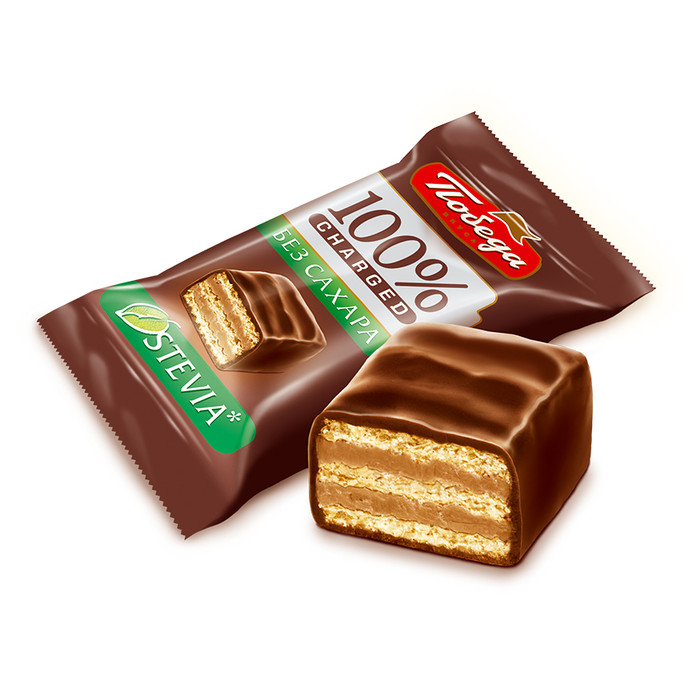 Конфеты из невесомой вафли с классической начинкой без сахара – доказательство тому, что даже десерт может быть легким. Сочетание проверенного временем рецепта, инновационного подхода в производстве полезных продуктов, а также использование только качественных ингредиентов, создают любимый всеми вкус с максимальной пользой. Корпус конфеты состоит из нескольких слоев вкуснейшей вафли, которая приятно хрустит и потом нежно тает во рту. А покрывает конфету настоящий горький шоколад без добавления сахара на натуральном сахарозаменителе - стевиолгликозиде. Стевиолгликозид – очищенный экстракт растения стевии (Stevia rebaudiana), который придает листьям сладкий вкус. Растение стевия родом из Южной Америки. Это уникальный природный сахарозаменитель, не имеющий аналогов, благодаря особенной сладости и натуральному происхождению.