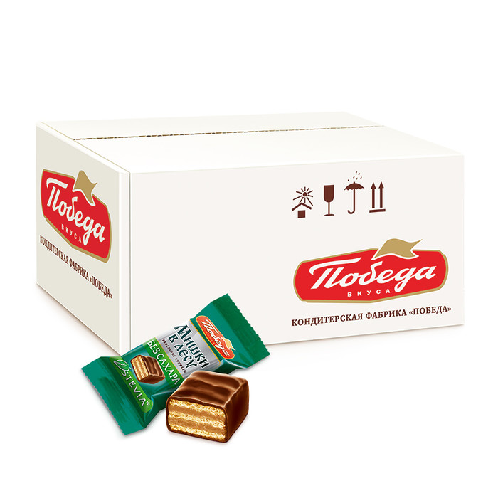 Конфеты «Мишки в лесу» на протяжении нескольких поколений являются символом семейного праздника и уютного чаепития в кругу самых близких. Уникальность рецепта "Победы" в сочетании традиционной шоколадной начинки из натурального какао, хрустящей вафельной крошки и слоя насыщенного горького шоколада 72 %. Ваша любимая классика теперь без сахара, на натуральном сахарозаменителе стевиолгликозиде. Стевиолгликозид – очищенный экстракт растения стевии (Stevia rebaudiana), который придает листьям сладкий вкус. Растение стевия родом из Южной Америки. Это уникальный природный сахарозаменитель, не имеющий аналогов, благодаря особенной сладости и натуральному происхождению.
