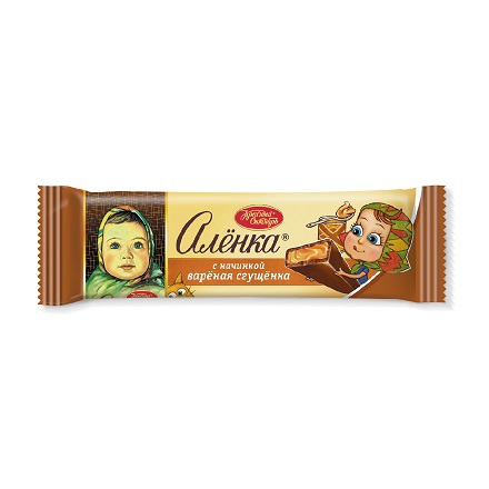 Батончик «Алёнка» с вареной сгущенкой – удобный сладкий перекус и щедрое лакомство к чаю. Увесистый батончик из настоящего молочного шоколада «Алёнка», созданного по рецептуре 60-х годов, с нежной начинкой из вареной сгущенки. Сладкая дружба шоколадного и карамельного вкусов под шлейфом из легких сливочных оттенков.