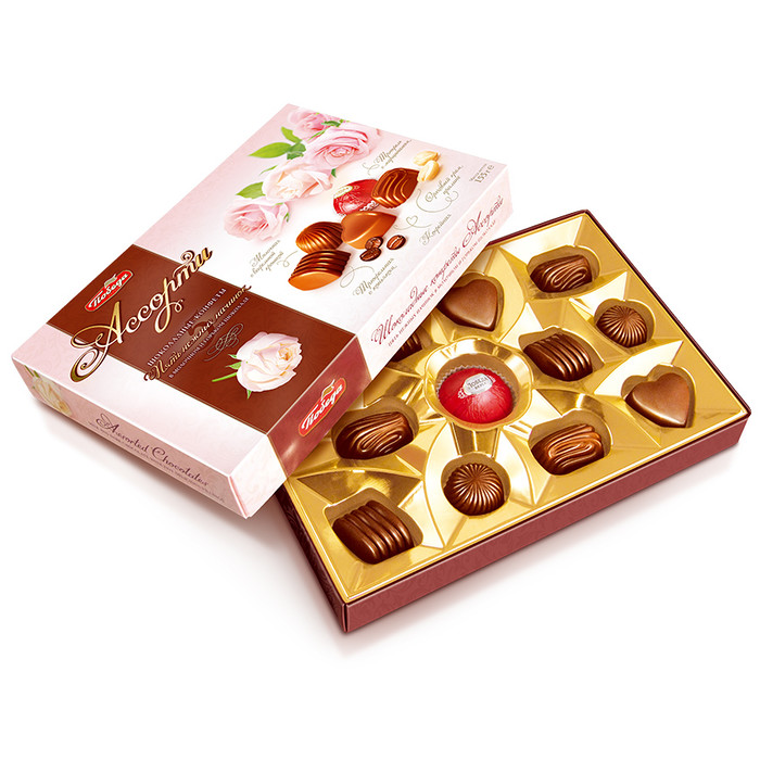 Благородная классика. В этой коробке изумительная подборка вкусов: трюфели с марципаном, с начинками пралине, шоколадными и трюфельными. Шоколадные шедевры "Ассорти" сделают особенно вкусным любой праздник. Начинки: молочная с вафельной крошкой, трюфельная с коньяком, ореховая крем пралине, кофейная, трюфели с марципаном.