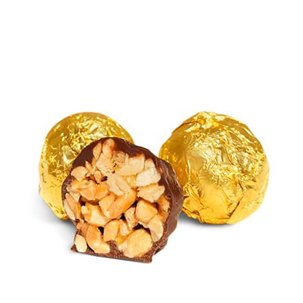 Нарядные конфеты «Тамбовская казначейша - грильяж» – медово-ореховый грильяж с ванильным ароматом в шоколадной глазури. Хрустящие грильяжные шарики покрыты душистой шоколадной глазурью и укутаны в фольгу. Конфеты ручной работы изготовлены по ГОСТ. Настоящее украшение чайного стола с медово-ореховым вкусом.