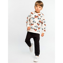 Костюм для мальчика, состоящий из футболки и удлинённых шорт, не стесняющих движения. На футболке современный принт. Костюм предназначен для повседневного использования.