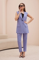 Костюм женский из кулирного полотна состоит из кофты и брюк. Кофта прямого силуэта. Горловина круглая. Рукав длинный, втачной на манжете. Низ изделия на поясе. На полочке принт в виде цветов. Брюки прямые, в боковых швах есть карманы. Верх на поясе с резинкой. Низ обработан на плоскошовной машине.