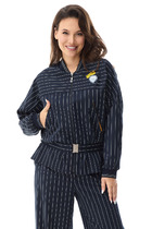 Костюм женский из кулирного полотна состоит из футболки и брюк. Футболка прямая, горловина круглая, рукав короткий, втачной, на полочке принт, низ изделия обработан на плоскошовной машине. Брюки прямые, верх на поясе с резинкой, в боковых швах вставки из отделочной ткани с печатью, низ изделия на резинке.