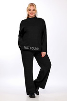 Костюм с брюками, спортивного типа. По бокам брюк лампасы молочного цвета. Брюки с карманами, в пояс вдет шнурок. По низу брюк черные манжеты с принтом. Кофта приталенного силуэта, по низу и на рукавах черные манжеты с принтом. Горловина обработана окантовкой.