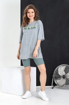 Костюм женский, ткань футер 2-х нитка. Толстовка прямого силуэта, имеет капюшон, карман "кенгуру", короткий рукав. Брюки без карманов, укороченные, низ брюк на резинке. Удобный современный костюм в стиле "спорт-шик".