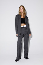 Костюм состоит из куртки с капюшоном и брюк. Брюки на эластичном поясе, с карманами, с фигурными подрезами спереди. Рукав втачной, длинный, на эластичном манжете, с лампасами вдоль рукава. Куртка на молнии, с капюшоном, полуприталенная, с диагональным подрезом и лампасами на полочке, на поясе. Вдоль лицевого края капюшона расположена вставка из контрастного полотна с лампасами.