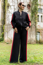 Костюм юбочный,сочетание полоски ,хлопка и трикотажа создает шикарный образ как для работы,отдыха,так и для повседневной жизни.Рубашка женская выполнена из хлопоковый ткани, с отложным воротником на стойке, с центральной застёжкой на петли и пуговицы. полочки с нагрудными вытачками с накладными карманами к клапанами, застёгивающиеся на петли и пуговицы, рукава рубашечного кроя, с притачными манжетами, застёгивающиеся на петли и пуговицы. спинка цельная, по бокам обработаны разрезы. джемпер женский выполнен из премиум трикотажа, свободного силуэта,с V-образным вырезом горловины, со спущеным плечом, рукава 7/8. По полочке серебрянная дизайнерская печать, по низу серебрянная вставка. Спинка со средним швом. Горловина обработана бейкой.Юбка женская асиметричного кроя, из классической костюмной полоски, по переду пояс вставка сошлёвками, по спинке пояс с эластичной резинкой.