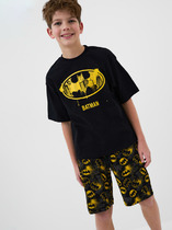Костюм детский футболка и шорты. Футболка с принтом прямого силуэта с втачным коротким рукавом. V-образный вырез горловины обработан узким воротником. Декоративная линия плеча подчеркнута кантом из отделочного материала. Низ рукава и изделия-подгибка. Шорты прямого, свободного силуэта с притачной резинкой и карманами "хулиган". Вход в в карман подчеркнут декоративным кантом из отделочного материала. Низ подгибка. На передней половине шорт небольшой принт.