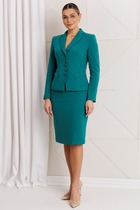 Костюм двухпредметный, состоящий из элегантного женского жилета, полуприлегающего силуэта с застежкой на декоративную тесьму, полукольцо и потайную пуговицу. Жилет на подкладке.