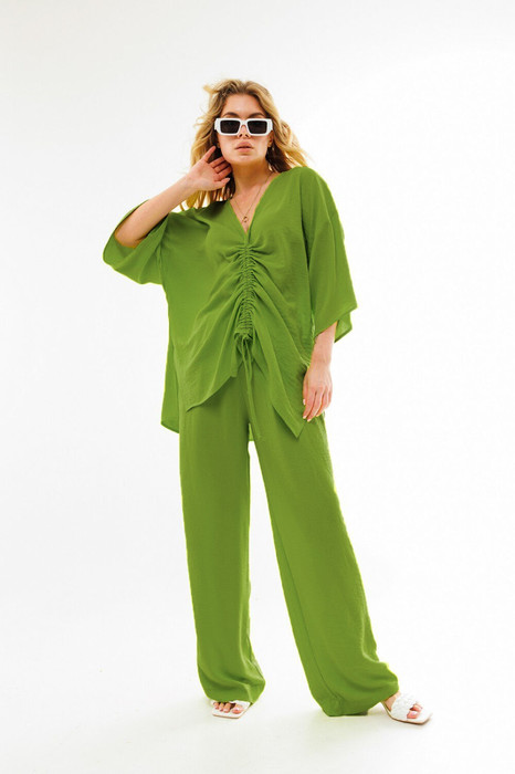 Туника свободного кроя с кулисой по переду. В боковых швах разрезы.