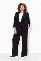 Жакет свободного силуэта с застежкой по переду на кнопки. Воротник отложной. По переду отрезные кокетки, накладные карманы с клапанами. По спинке кокетка и рельефы. Рукав двухшовный с притачной манжетой на кнопках. Низ жакета на притачном поясе.