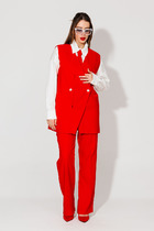 Костюм женский трехпредметный, состоящий из юбки, жилета и галстука.