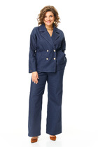 Жакет свободного силуэта, двухбортный со спущенным плечом. Перед и спинка на кокетках. По переду в кокетках декоративные клапаны. Рукав длинный на притачной манжете.