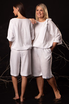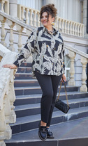 Рубашка свободного силуэта, с центральной бортовой застежкой по переду на петли пуговицы. Воротник отложной стойка. Спинка с кокеткой, рукав длинный на манжете.