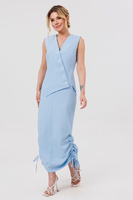 Жилет полуприлегающего силуэта с наклонной застежкой по переду на пуговицы. Жилет на подкладке.
